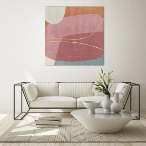 - Obraz s jemnými pastelovými farbami, nepravidelnými tvarmi a zlatými líniami. Táto umelecká kompozícia je ideálna do moderných a útulných priestorov, ako sú obývačky, spálne alebo detské izby.