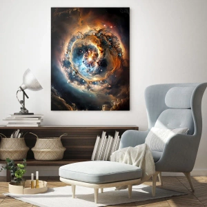 - Veľkolepá kompozícia zobrazujúca explóziu svetla a hmoty v strede galaktického víru. Obraz vyžaruje energiu, tajomstvo a nekonečno a vytvára jedinečný prvok modernej interiérovej dekorácie.
