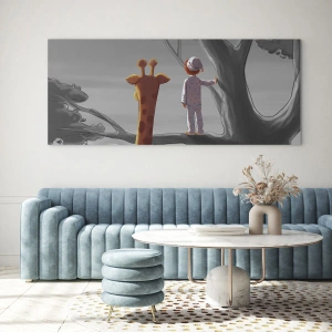 Motív dieťaťa a žirafy, ako symbol priateľstva a spoločného objavovania sveta, sa môže stať jedinečným dekoratívnym prvkom – pre deti aj dospelých, ktorí ocenia symbolický význam a dojímavé príbehy.