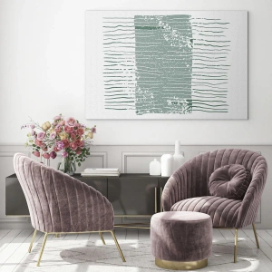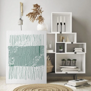 - Obraz zobrazuje abstraktnú štruktúru v podobe horizontálnych, opotrebovaných línií v odtieňoch morskej zelenej. Tlmená a harmonická kompozícia, ideálna pre moderné, prírodné interiéry.