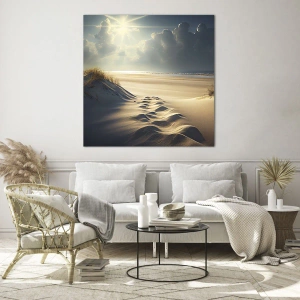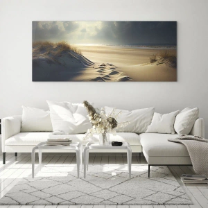 Obraz „Upokojujúca krajina“ je umeleckou interpretáciou krásy prírody, zobrazujúcou pokojné duny zaliate slnečnými lúčmi. Jasné svetlo prenikajúce cez oblaky vytvára neuveriteľne malebný efekt a dodáva celku pocit tepla a pokoja. Jemné tvary dún a hlboké tiene na piesku priťahujú pohľad a vytvárajú harmonickú kompozíciu svetla a štruktúry, ktorá upokojuje zmysly.