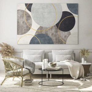 - Abstraktná kompozícia zložená z prekrývajúcich sa kruhov v tlmených farbách béžovej, sivej, námorníckej modrej a zlatej. Moderná grafika v minimalistickom štýle, ktorá prináša poriadok a pokoj do každého interiéru.