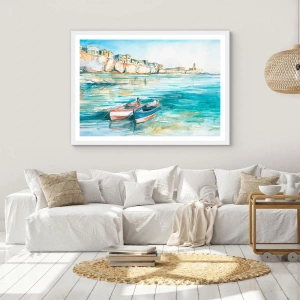Plagát v bielom ráme - Krajina v modrej - 61x91 cm