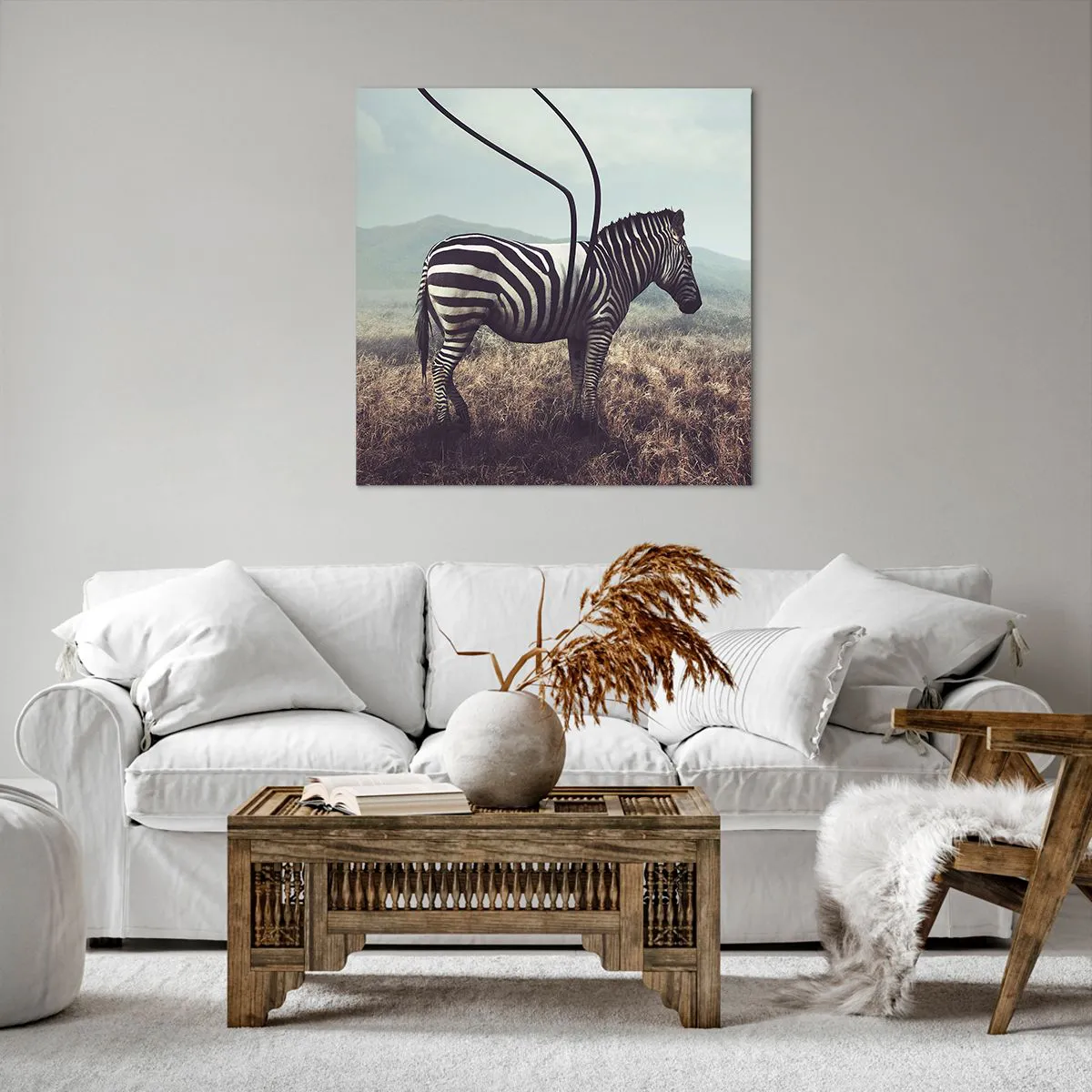 Každý obraz má na ráme pripevnený vešiak a montážnu sadu (skrutka + hmoždinka), takže je pripravený na zavesenie na stenu