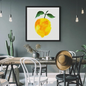 - Tento plagát zobrazuje umeleckú akvarelovú maľbu citróna so zelenými listami na svetlom pozadí. Minimalistická kompozícia a teplé farby dodávajú interiéru svieže, prirodzené čaro.