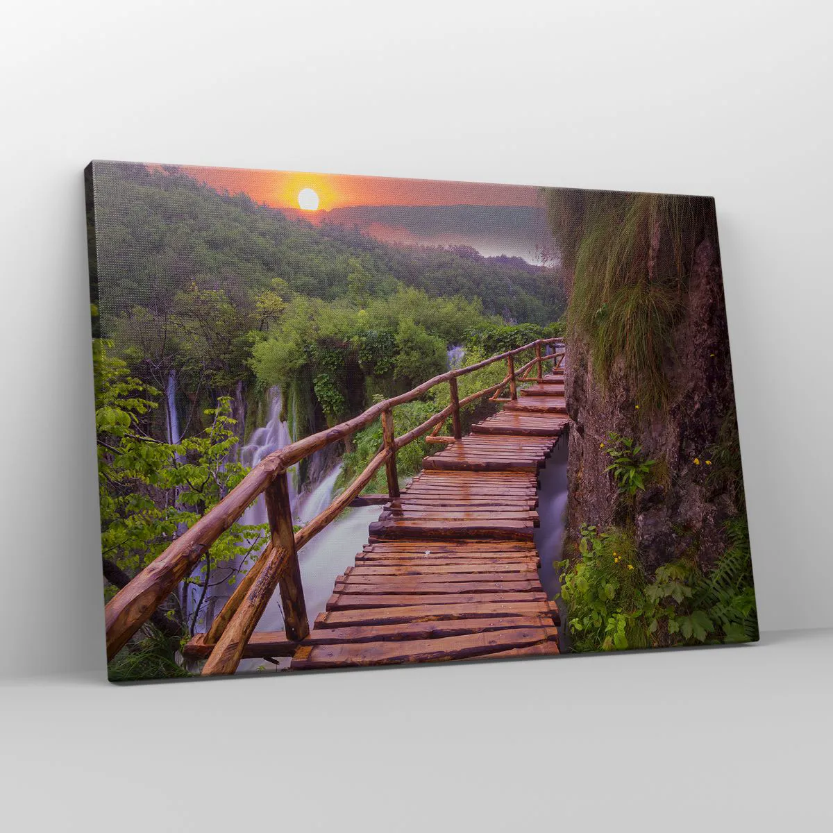 Nástenné umenie - Krása nad vierou - Most s výhľadom na vodopády pri západe slnka