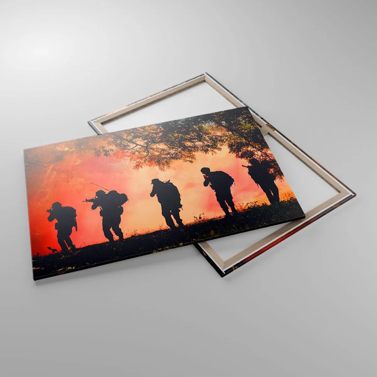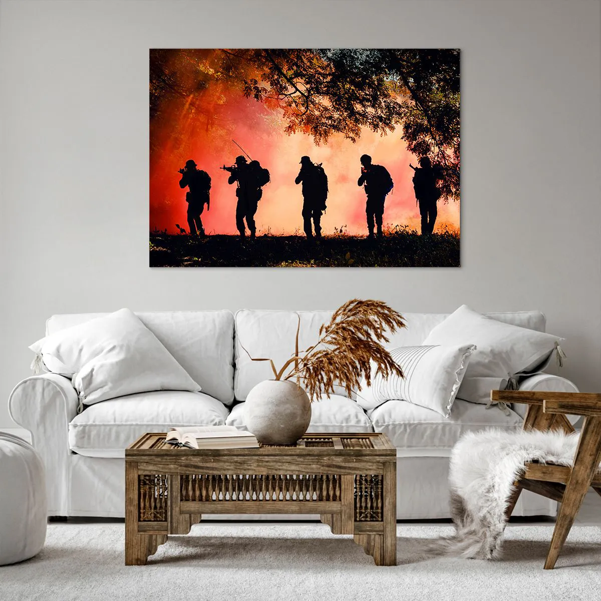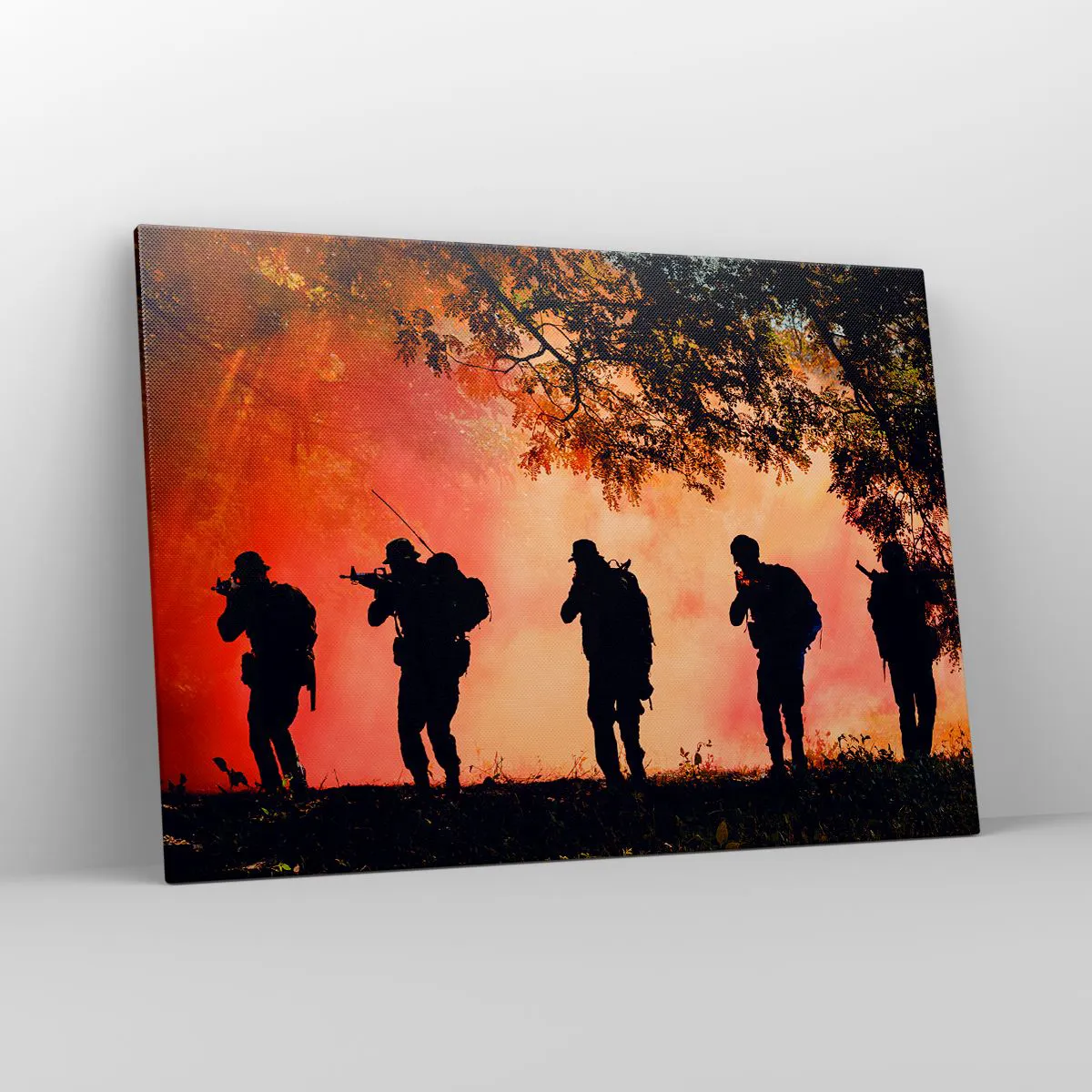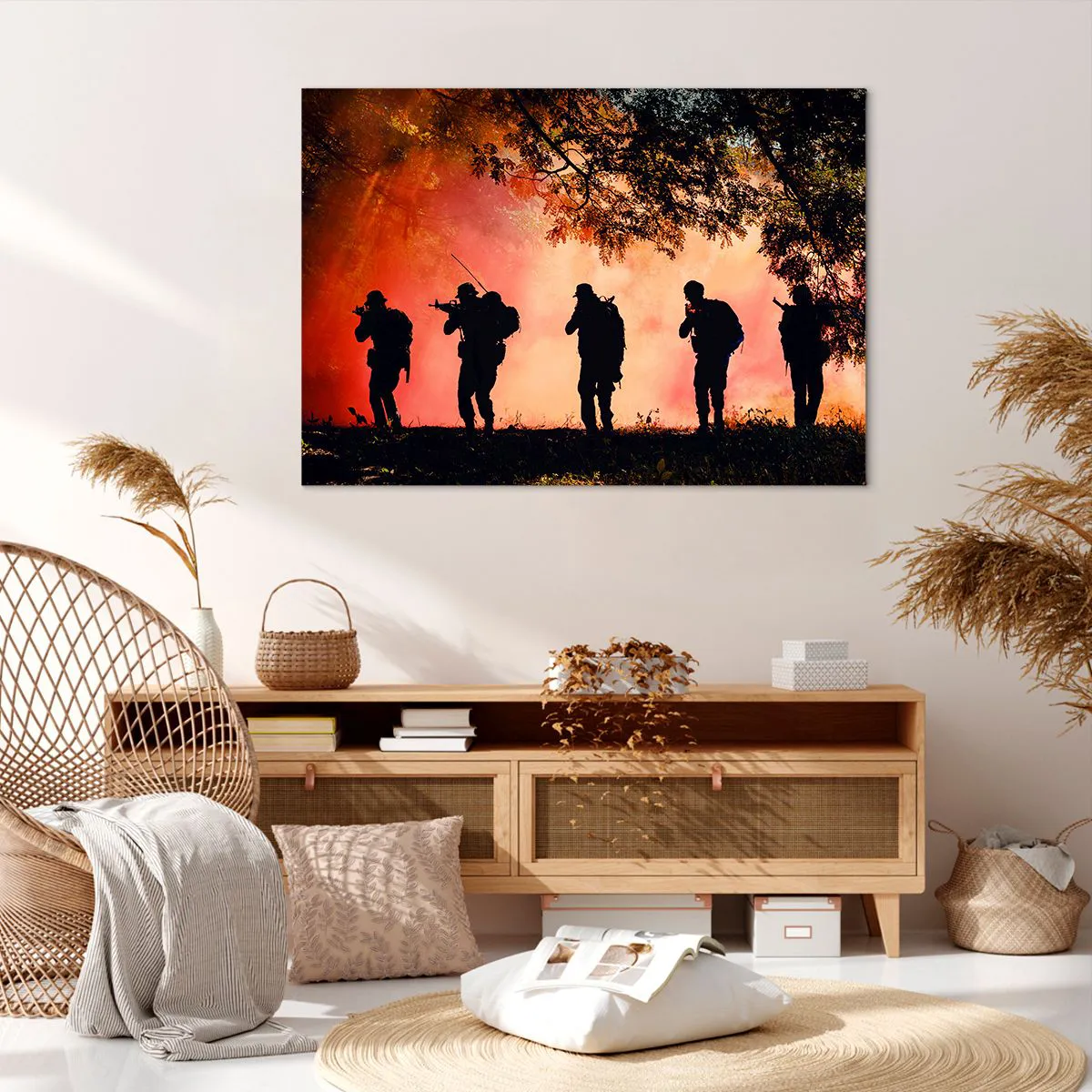 • Vojak, zbraň, puška, Ľudia, armáda, Do haly, do obývačky Čierna, oranžová, Vodorovný