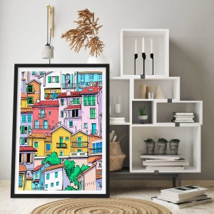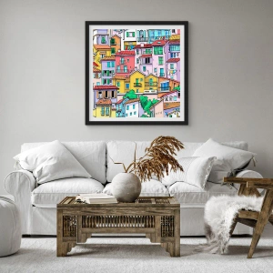Plagát v čiernom ráme - Veselé mesto - 30x30 cm