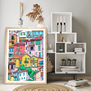 Plagát v ráme zo svetlého duba - Veselé mesto - 50x50 cm