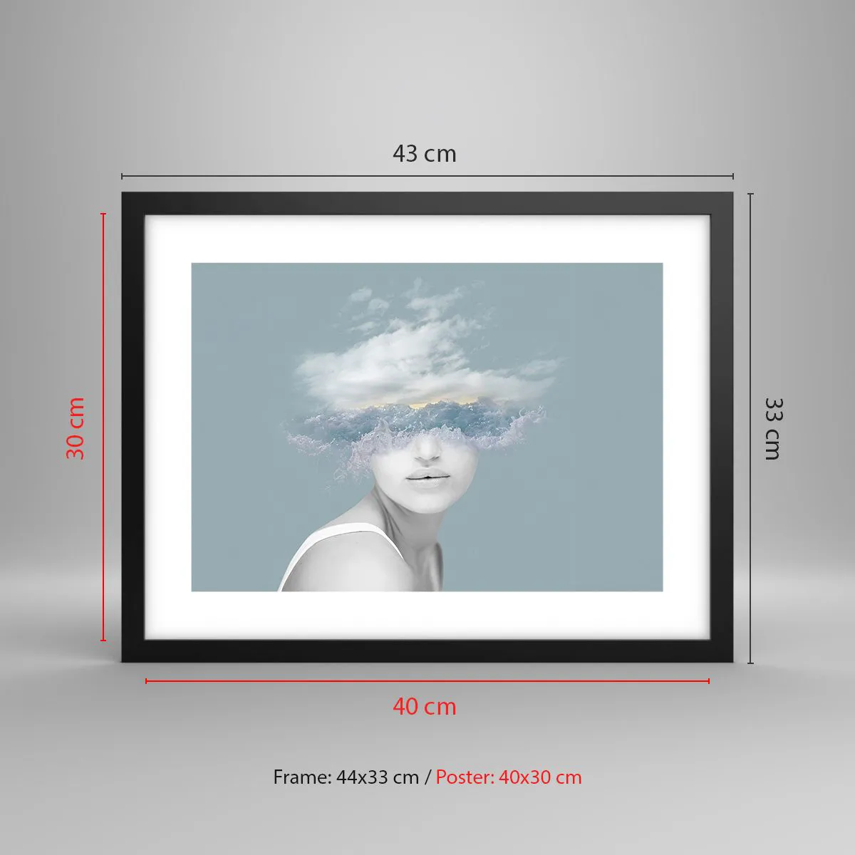 Plagát v čiernom ráme - S hlavou v oblakoch - 40x30 cm