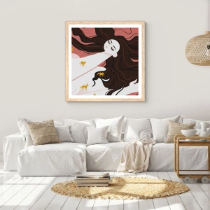 Plagát v ráme zo svetlého duba - Sen o zlatom koni - 40x30 cm