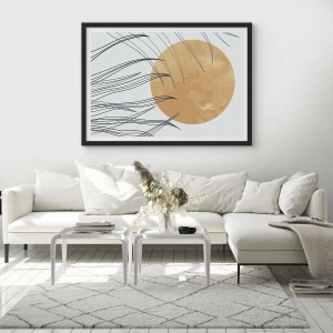 - Moderná grafika s motívom splnu v teplých tónoch a tenkými líniami trávy. Elegantný a minimalistický dizajn, ktorý prináša pokoj a harmóniu do každého interiéru.
