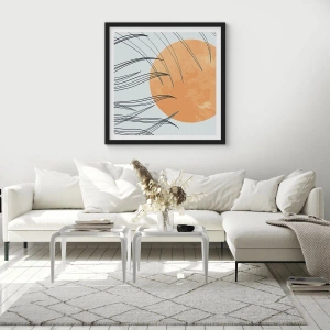 „Vždy smerom k slnku“ je decentný plagát zobrazujúci abstraktnú kompozíciu mesiaca a trávy v minimalistickom štýle. Teplá béžová farba modrej gule v kombinácii s tenkými čiernymi líniami vegetácie vytvára harmonický a pokojný obraz. Celkový dizajn je zachovaný v tlmených farbách, vďaka čomu sa plagát dokonale hodí do moderných interiérov.