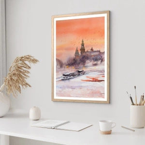 Plagát v ráme zo svetlého duba - Kráľovský západ slnka - 40x40 cm