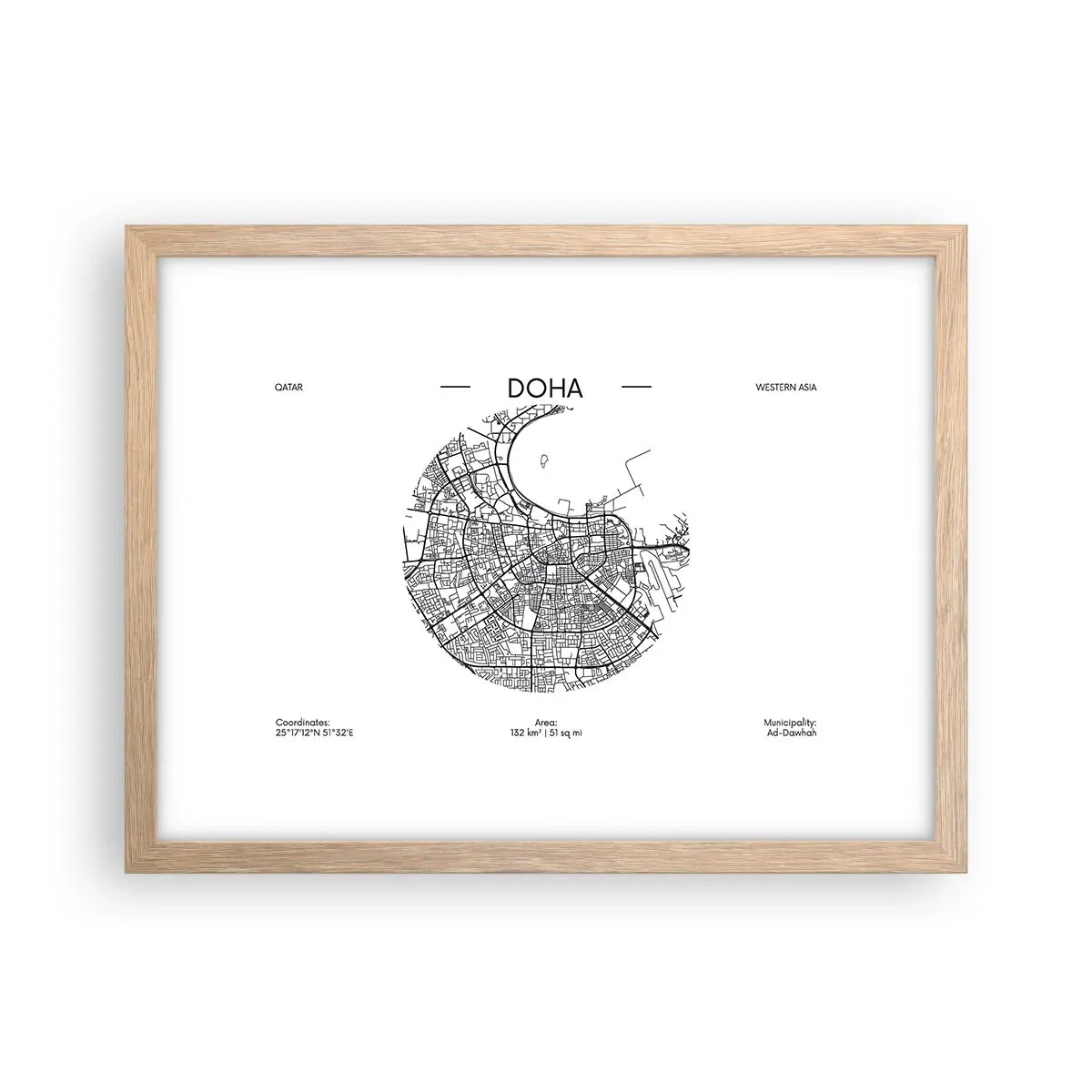 Plagát v ráme zo svetlého duba - Anatómia Dauhy - 40x30 cm