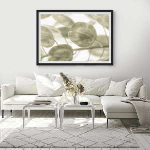 Plagát predstavuje rastlinný motív v elegantnej škandinávskej verzii. Realistické detaily listov zachytené v jemnom svetle zdôrazňujú krásu prírody. Svieže, zelené farby v kombinácii so svetlým pozadím vytvárajú upokojujúci vizuálny efekt, ideálny pre relaxačné priestory.