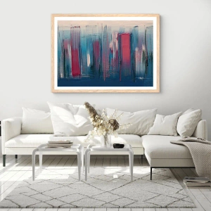 Plagát v ráme zo svetlého duba - Vertikálna kompozícia v modrej a červenej - 70x50 cm