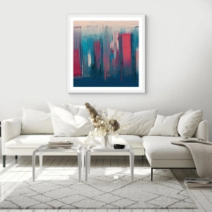 Plagát v bielom ráme - Vertikálna kompozícia v modrej a červenej - 50x50 cm