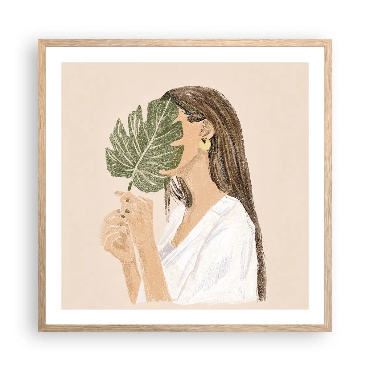 Plagát v ráme zo svetlého duba - Tajomný portrét s vejárom - 60x60 cm