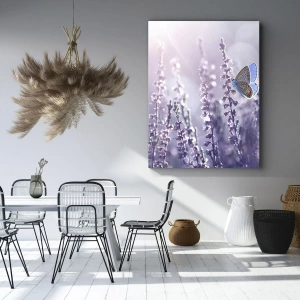 - Tento obraz zobrazuje motýľa sediaceho na kvitnúcej levanduli, osvetleného jemným ranným svetlom. Je to dokonalý dekoratívny prvok, ktorý vnesie harmóniu a jemnosť do každého interiéru.