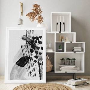 Plagát v bielom ráme - Čiernobiela organická abstrakcia - 61x91 cm
