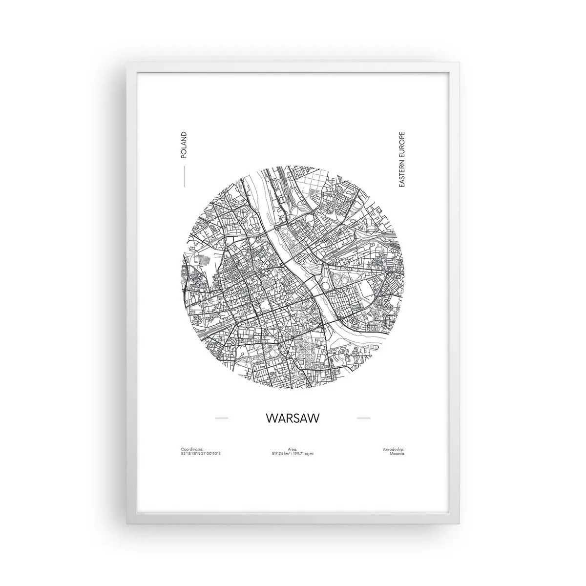 Plagát v bielom ráme - Anatómia Varšavy - 50x70 cm