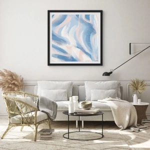 Plagát v čiernom ráme - Abstraktná vlna v odtieňoch modrej a béžovej - 50x70cm - Modré kolísanie - Moderná nástenná dekorácia do obývacej izby a spálne ARTTOR