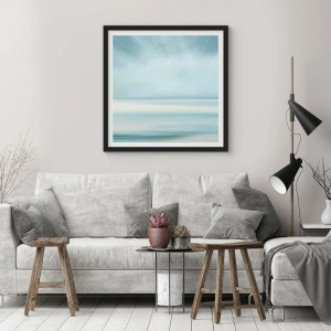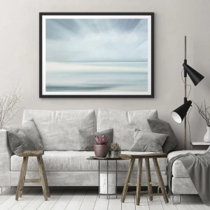 Plagát v čiernom ráme - Jemná abstrakcia v odtieňoch modrej a bielej - 50x70cm - Kľud až kam oko siaha - Moderná nástenná dekorácia do obývacej izby a spálne ARTTOR