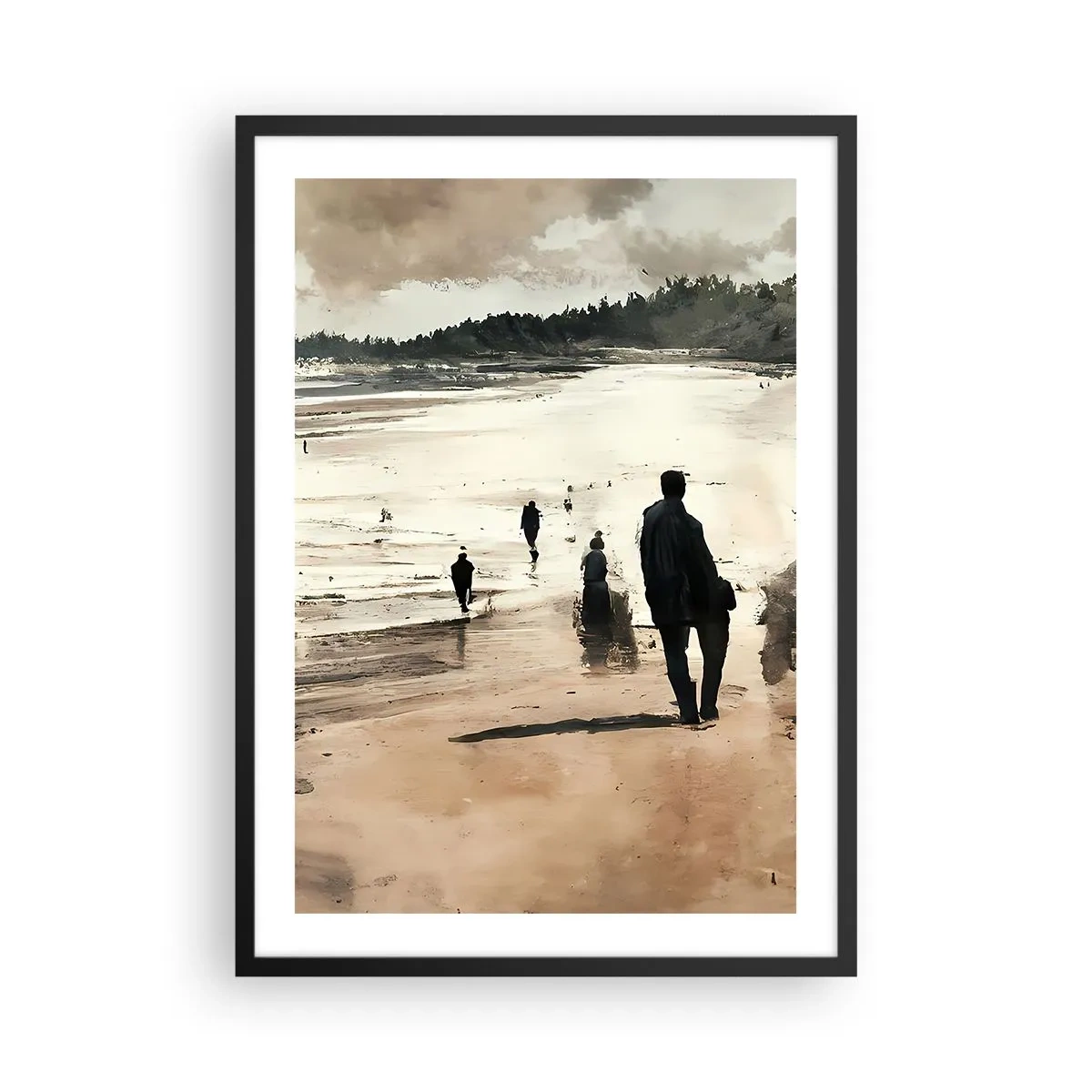 Plagát v čiernom ráme - Prechádzka po pláži v nostalgických farbách - 50x70cm - Vyvolaní - Moderná nástenná dekorácia do obývacej izby a spálne ARTTOR