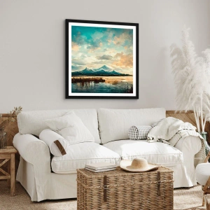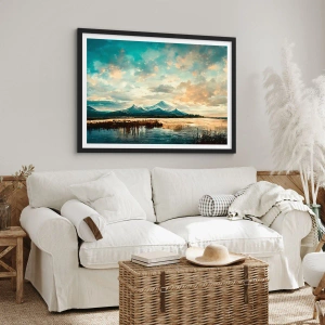 Plagát v čiernom ráme - Malebná horská krajina pri západe slnka - 50x70cm - Pod ochranou neba - Moderná nástenná dekorácia do obývacej izby a spálne ARTTOR