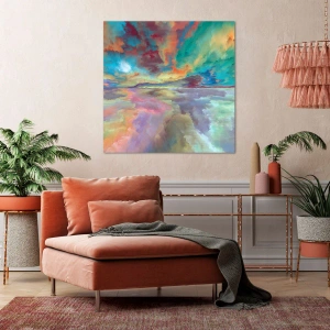 - Táto tlač na plátne zobrazuje abstraktnú oblačnosť v intenzívnych, žiarivých farbách. Je to perfektná dekorácia, ktorá vnesie harmóniu a umelecký nádych do každého interiéru.