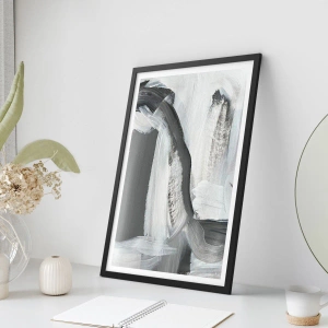 Plagát v čiernom ráme - Abstraktná kompozícia čiernej, bielej a sivej - 50x70cm - Pevným pohybom - Moderná nástenná dekorácia do obývacej izby a spálne ARTTOR
