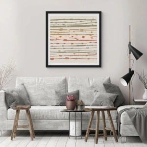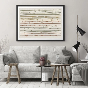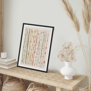 Plagát v čiernom ráme - Abstraktné zvislé čiary v prírodných odtieňoch - 50x70cm - Hudobný záznam farieb - Moderná nástenná dekorácia do obývacej izby a spálne ARTTOR