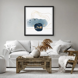 Plagát v čiernom ráme - Moderná abstraktná kompozícia v odtieňoch modrej a zlatej. - 50x70cm - Modro-zlatá fantázia - Moderná nástenná dekorácia do obývacej izby a spálne ARTTOR