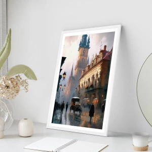 Plagát v bielom ráme - Kúzlo pražského večera - 70x100 cm