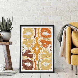 Farebná schéma, založená na odtieňoch béžovej, hnedej, žltej a jemnej zelenej, prináša do interiéru teplo a útulnosť. Organické tvary a jemné tónové prechody spôsobujú, že plagát pôsobí takmer trojrozmerne, čím vytvára hĺbku a jedinečný vizuálny efekt. Symetrická kompozícia mu dodáva poriadok a súdržnosť, ako aj jemný umelecký výraz.