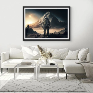 Plagát v čiernom ráme - Astronaut na cudzej planéte v hviezdnom svetle - 50x70cm - Nová výzva - Moderná nástenná dekorácia do obývacej izby a spálne ARTTOR