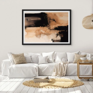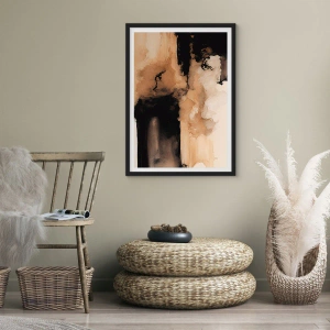 Plagát v čiernom ráme - Abstraktná kompozícia v teplých odtieňoch hnedej. - 50x70cm - Pútavá abstrakcia - Moderná nástenná dekorácia do obývacej izby a spálne ARTTOR