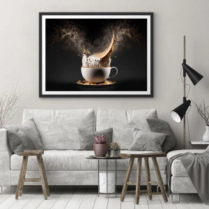 Plagát v čiernom ráme - Dynamická explózia kávy v šálke - 50x70cm - Explózia chuti - Moderná nástenná dekorácia do obývacej izby a spálne ARTTOR