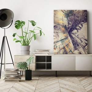 Línie a štruktúry dominantné v obraze pripomínajú technologické inšpirácie a dodávajú celku futuristický charakter. Vďaka svojim minimalistickým, no zároveň dynamickým formám sa obraz perfektne hodí do kancelárskych priestorov, obývacích izieb a iných moderných interiérov. Jeho farby prinášajú pokoj a zároveň nabádajú k zamysleniu sa nad pohybom a zmenou.