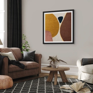 Plagát v čiernom ráme - Abstraktná geometrická kompozícia v teplých farbách - 50x70cm - Abstrakcia – miesto v priestore - Moderná nástenná dekorácia do obývacej izby a spálne ARTTOR