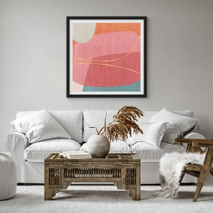 Plagát v čiernom ráme - Pastelová kompozícia so zlatou niťou - 50x40 cm