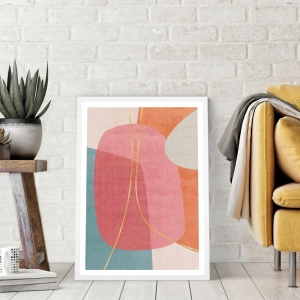 Plagát v bielom ráme - Pastelová kompozícia so zlatou niťou - 50x40 cm