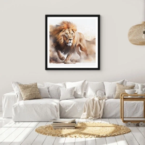 Plagát v čiernom ráme - Majestátny lev v pohybe v maliarskom štýle - 50x70cm - Kráľ sa pohol - Moderná nástenná dekorácia do obývacej izby a spálne ARTTOR