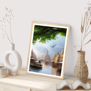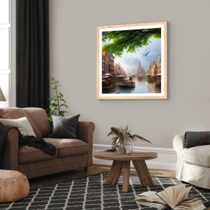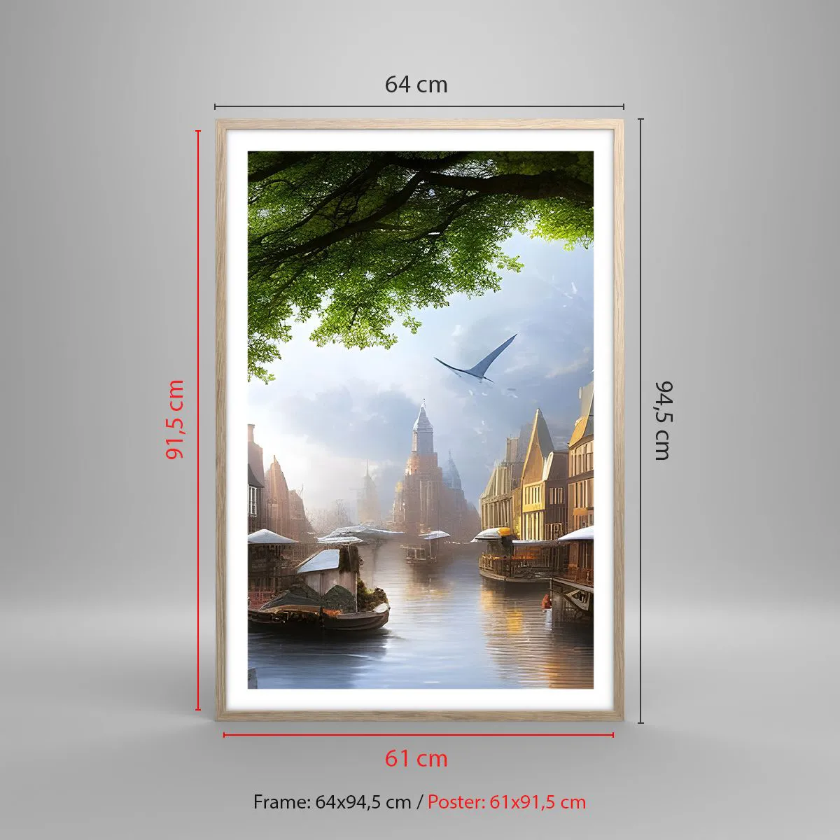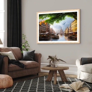 Plagát v ráme zo svetlého duba - Holandská mestská krajinka - 61x91 cm