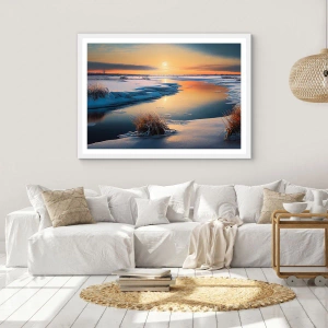 Plagát v bielom ráme - Zimný západ slnka - 100x70 cm