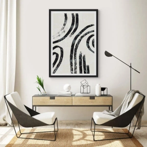 Plagát v čiernom ráme - Abstraktné čierne čiary na svetlom pozadí - 50x70cm - Napoly zastavený - Moderná nástenná dekorácia do obývacej izby a spálne ARTTOR