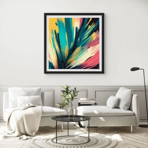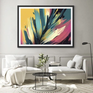 • Moderný plagát s abstraktnou explóziou farieb v dynamickom aranžmáne. Energické ťahy farby a žiarivé farby mu dodávajú expresívny charakter. Ideálny do štýlových interiérov. Plagát je zarámovaný v čiernom ráme.
