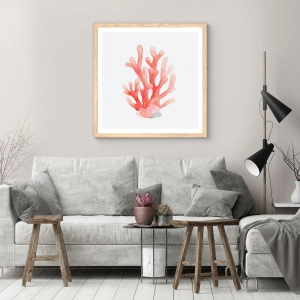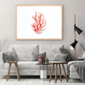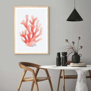 Plagát v ráme zo svetlého duba - Koralový koral - 70x50 cm