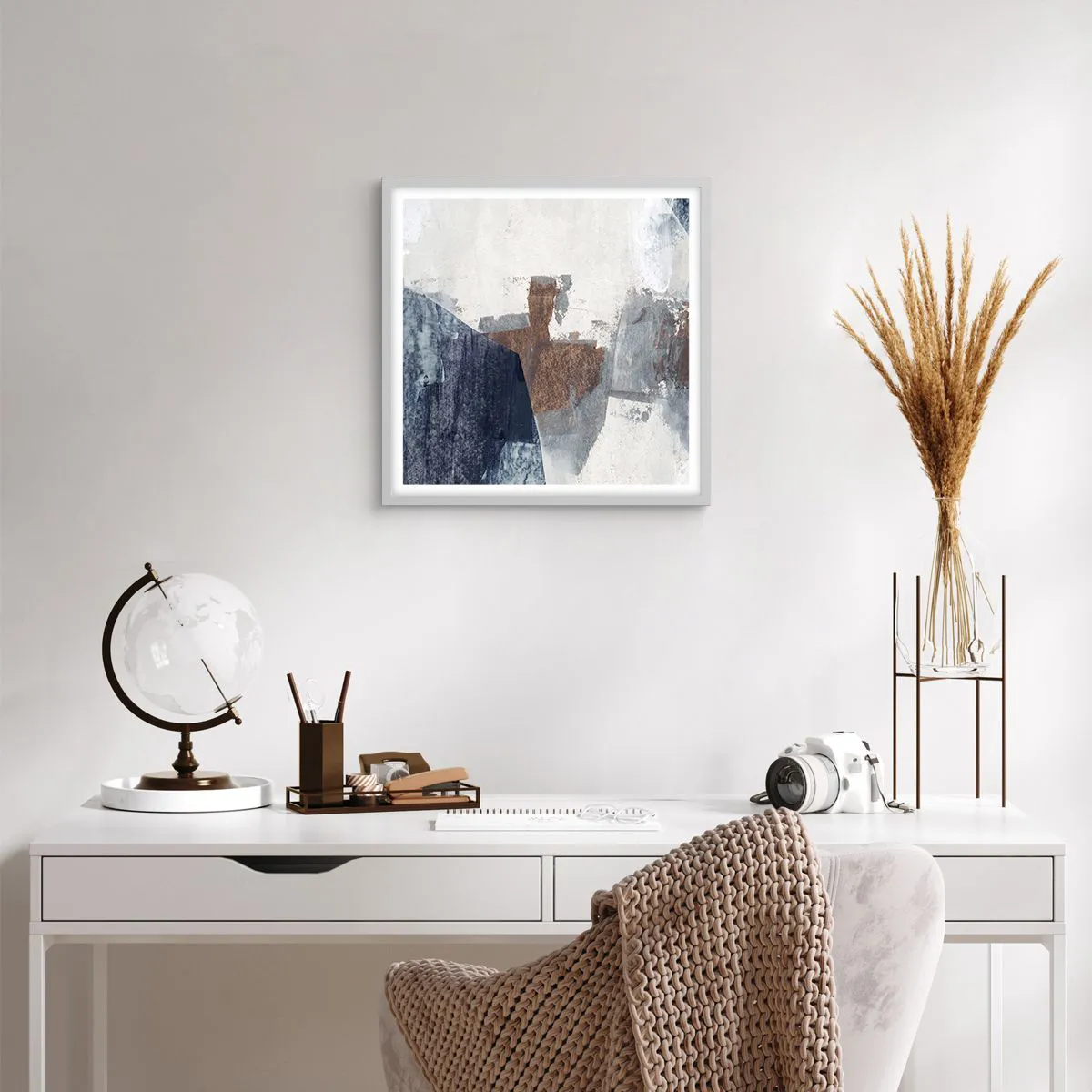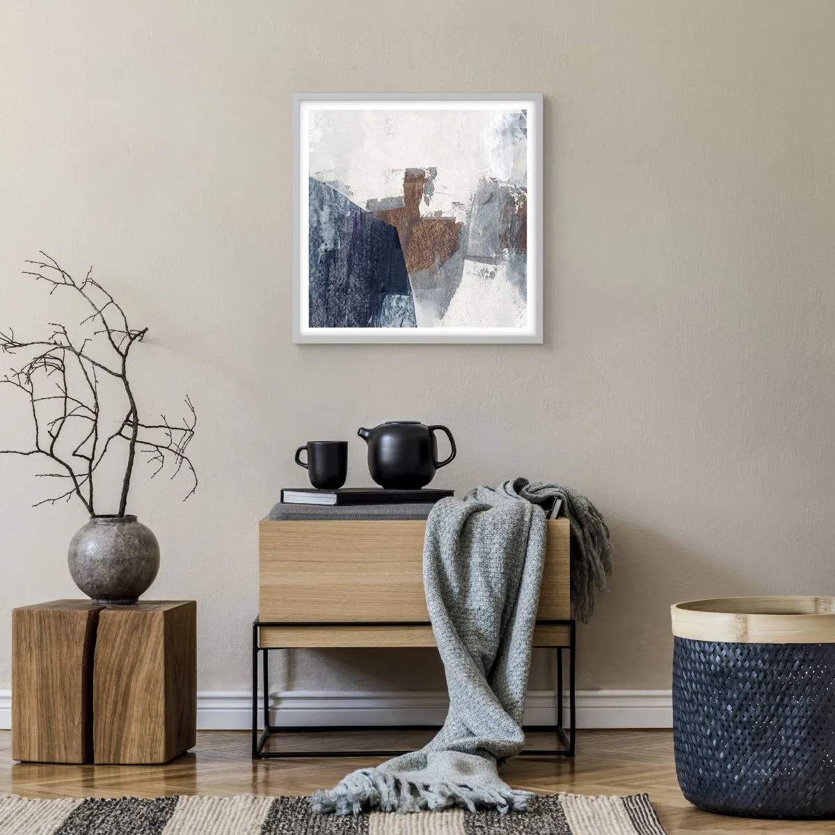 Plagát v bielom ráme - Modro-hnedé tvary - 50x50 cm